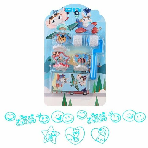 Печать цветная «Зверята» , набор 3 шт, ролик-печать с 2 насадками, штемпельная подушка
