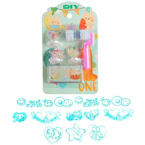Печать цветная «Зайка», набор 3 шт, ролик-печать с 2 насадками, штемпельная подушка