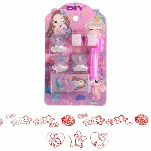 Печать цветная «Русалочка», набор 3 шт, ролик-печать с 2 насадками, штемпельная подушка