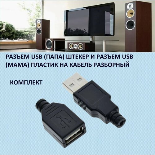 Разъем USB-A гнездо/USB-A штекер разборный на кабель