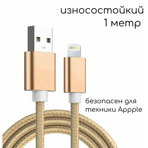 Кабель USB-Lightning для iPhone/iPad/AirPods, 1м, золото, износостойкий