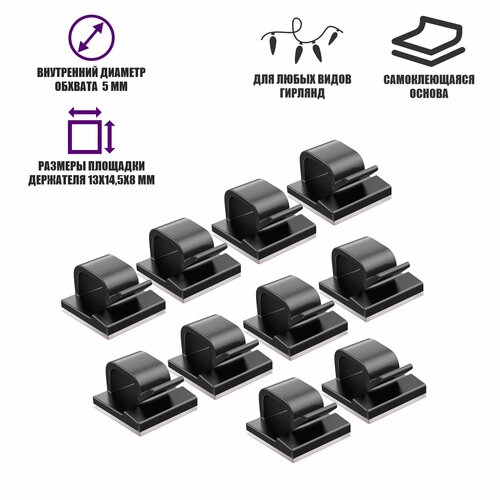 Держатель самоклеящийся для проводов и гирлянд тундра krep, 15х15 мм, 18 шт.