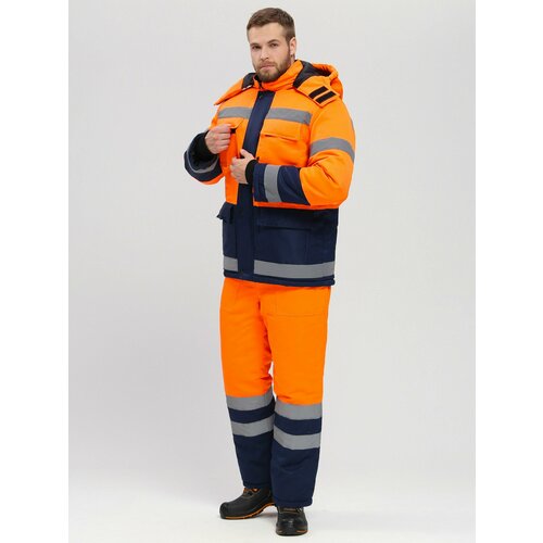 Костюм рабочий мужской зимний Дорожник-Ультра п/к, оранжевый/т. синий (40-42; 170-176)