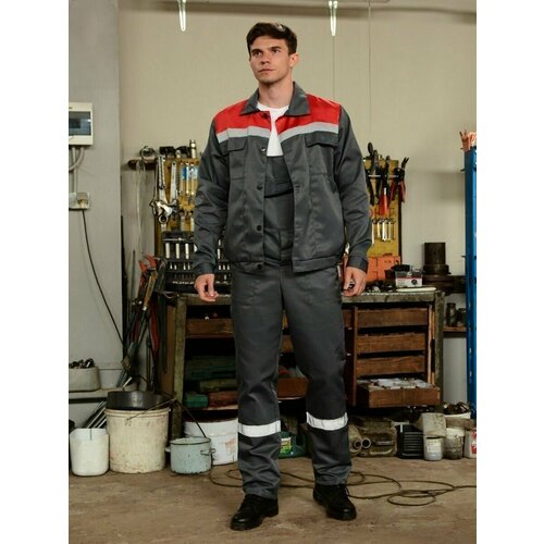 Костюм рабочий мужской Техник-2 СОП п/к, серый/красный (44-46; 182-188)