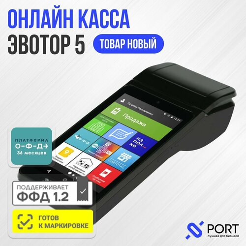 Онлайн касса Эвотор 5, ОФД 36 месяцев, без ФН, ФФД 1.2, Честный знак, ЕГАИС