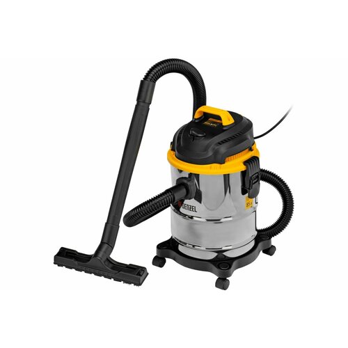Пылесос строительный Denzel SVC15 1200 Вт, бак 15л, шланг 2м 28201 черный, серебристый, желтый