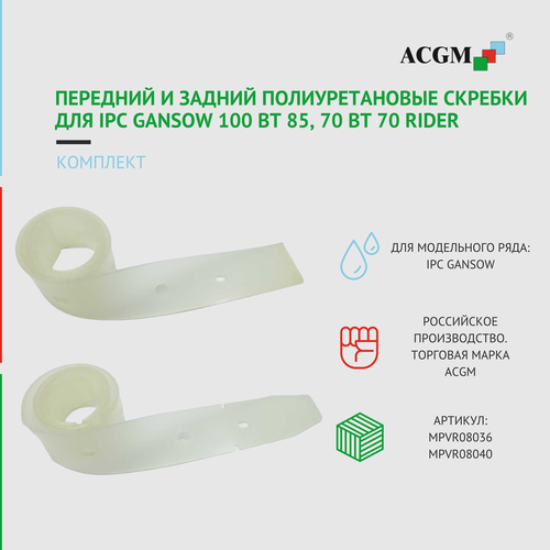 MPVR08036, MPVR08040 Комплект с передним и задним полиуретановым скребком для IPC GANSOW 100 ВТ 85, 70 ВТ 70 RIDER