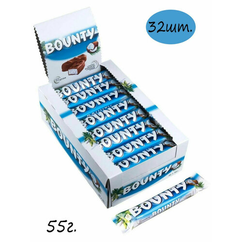 Шоколадные батончики Bounty, 32 шт по 55 г / Кокос, шоколад