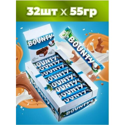 Шоколадные батончики Bounty, 32 шт по 55 г / Кокос, шоколад