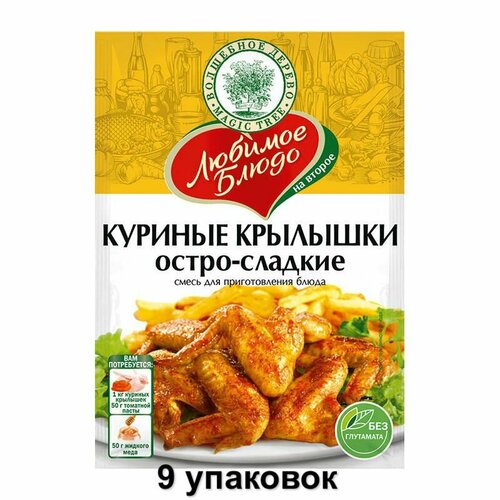 Волшебное дерево "Любимое дело" Смесь для приготовления блюда Куриные крылышки остро-сладкие, 30 г, 9 уп