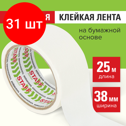 Комплект 31 шт, Клейкая лента малярная креппированная 38 мм x 25 м, STAFF, 229059