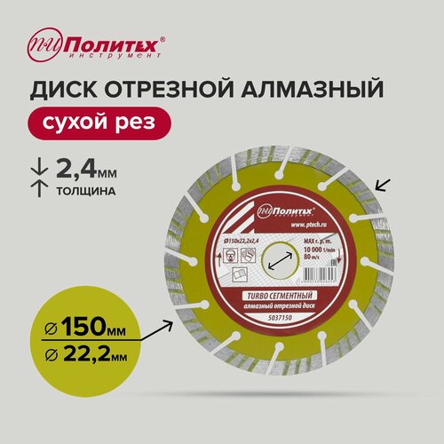 Диск отрезной алмазный по керамограниту, по камню Turbo-Сегмент 150 мм, Политех Инструмент