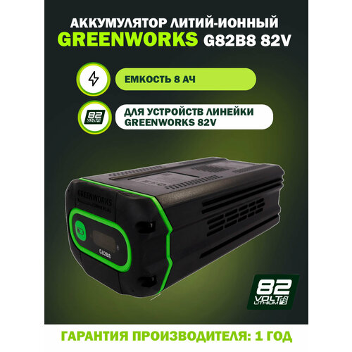 Аккумулятор Greenworks G82B8 82V, литий-ионный, емкость 8 Ач