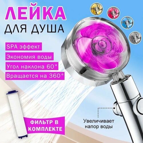 Лейка для душа с вентилятором, душ лейка с массажной и турбонасадкой, водосберегающая, фиолетовая