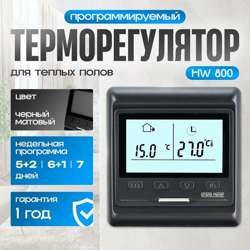 Терморегулятор Grand Meyer HW800, программируемый, термопласт, для теплого пола