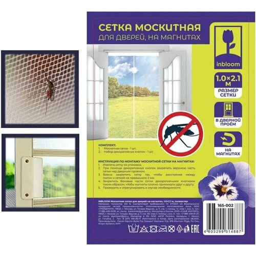 Москитная сетка Inbloom для дверей на магнитах, 1.0х2.1м, полиэстер