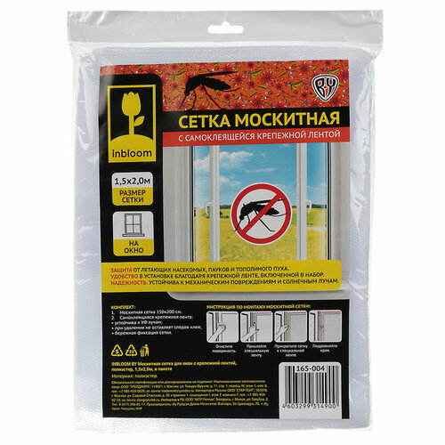 INBLOOM Москитная сетка для окон с крепежной лентой, 1.5х2.0м, полиэстер