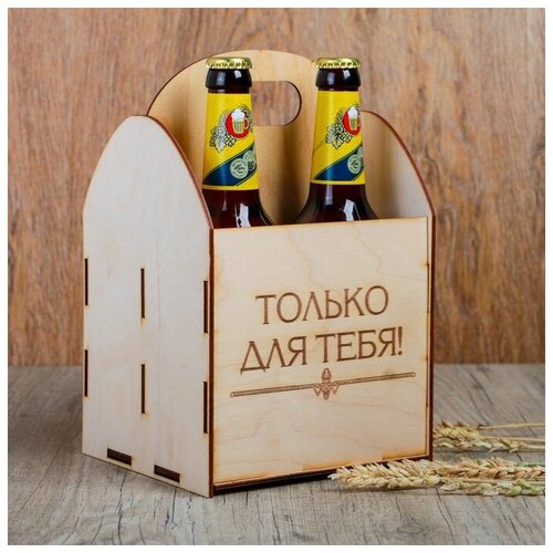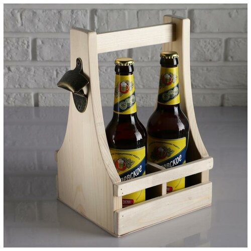 Ящик для пива 19×18×30 см с открывашкой, под 4 бутылки, деревянный 4898937