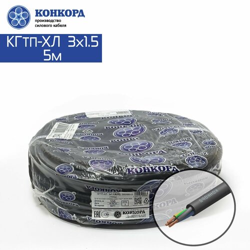 Кабель силовой морозостойкий Конкорд кгтп-хл 3х1.5 (N, PE) 380/660-3 5метров