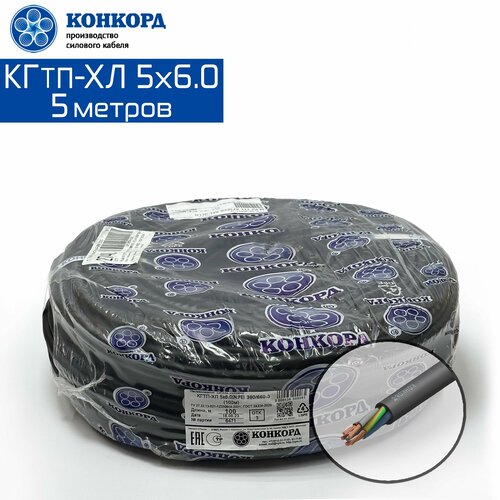 Кабель силовой морозостойкий Конкорд кгтп-хл 5х6.0(N; PE) 380/660-3 5метров
