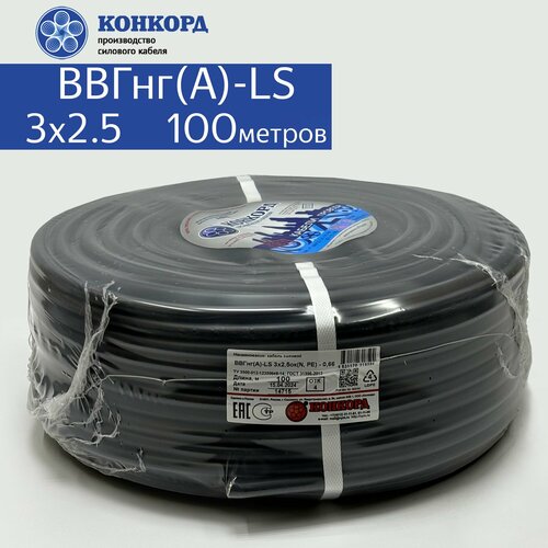 Кабель электрический ВВГнг(A)-LS 3х2.5 100метров Конкорд