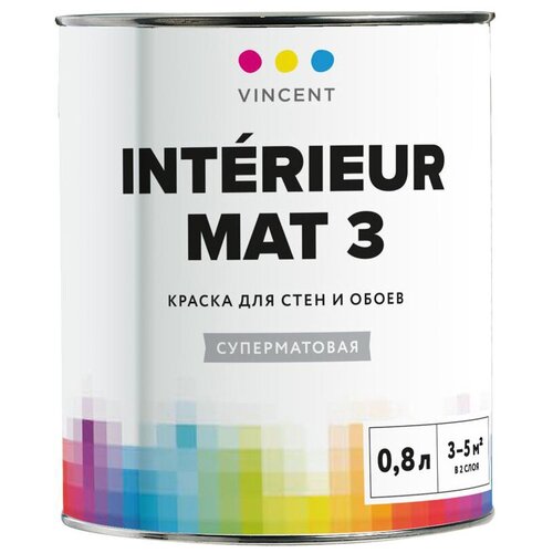 Краска водно-дисперсионная VINCENT Interieur Mat 3 влагостойкая моющаяся глубокоматовая 0.8 л
