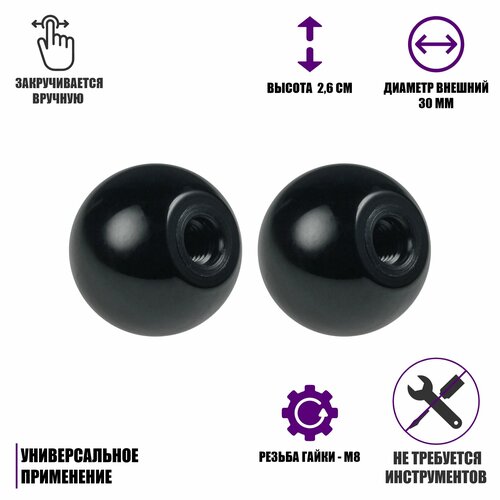 Гайка фиксатор, заглушка шар пластиковый D30 с резьбой М8, 2 шт