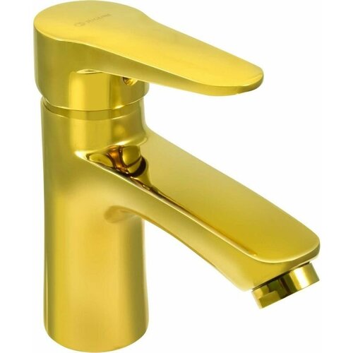 Смеситель для умывальника, золотой. Картридж 35 мм. Гибкая подводка пара, 35 см. Крепление гайка.