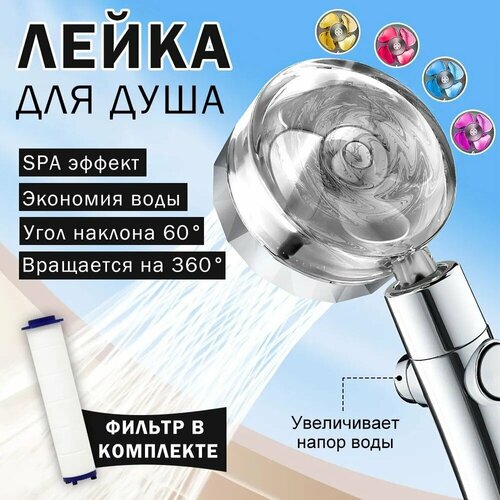 Лейка для душа с вентилятором, душ лейка с массажной и турбонасадкой, водосберегающая, фиолетовая