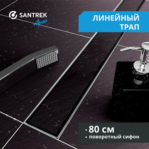 Линейный душевой трап SANTREK AQUA B-70800 нерж 70*800мм (горизонтальный выпуск 360 гр, ф40) (решетка щелевая, под плитку) сухой затвор и гидрозатвор