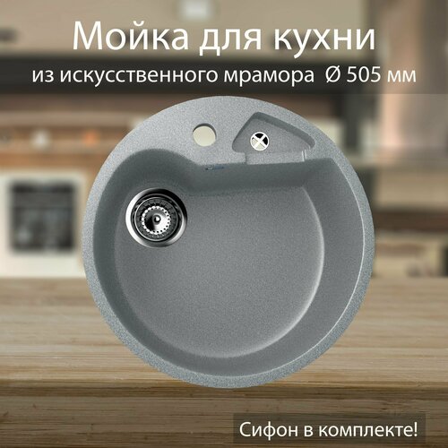 Мойка для кухни врезная из искусственного мрамора, круглая D 505 мм со сливной арматурой / Раковина для кухни Ulgran