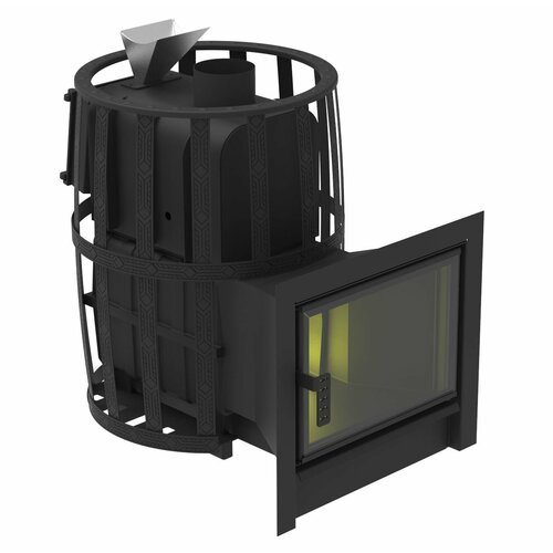Печь-камин чугунная для бани Воевода Флагман 20 сетчатый кожух Закрытая каменка