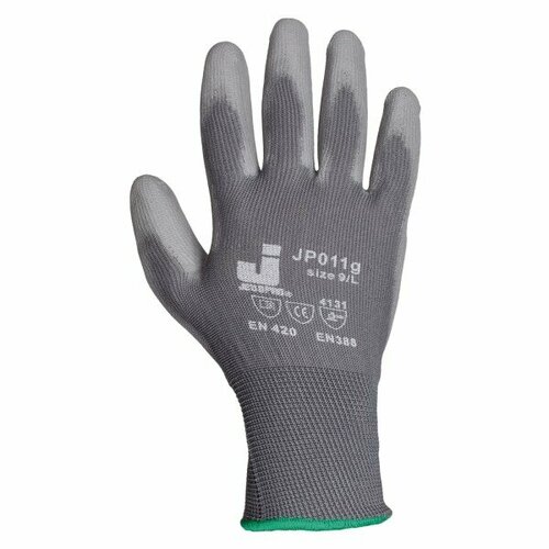 JetaSafety Перчатки защиты с полиуретановым покрытием,12 пар,JP011g-L 100040894742