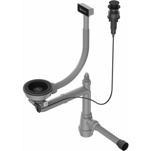 Арматура с клапан-автоматом для одночашевых кухоных моек с прямоугольным переливом Omoikiri WK-1-A GB 4956767, графит