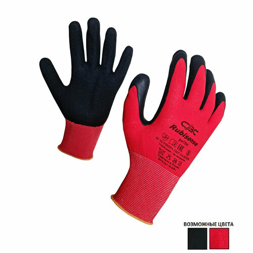 Перчатки нейлоновые с латексным обливом СВС Рубисенс красно-черные 9 (L)