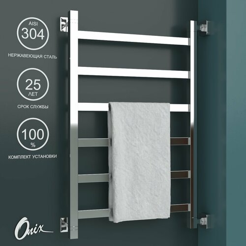 Полотенцесушитель Водяной Onix, модель Best Direct Chrome Right 500x600, П-образный, Хром, полный комплект, с защитой от электрокоррозии