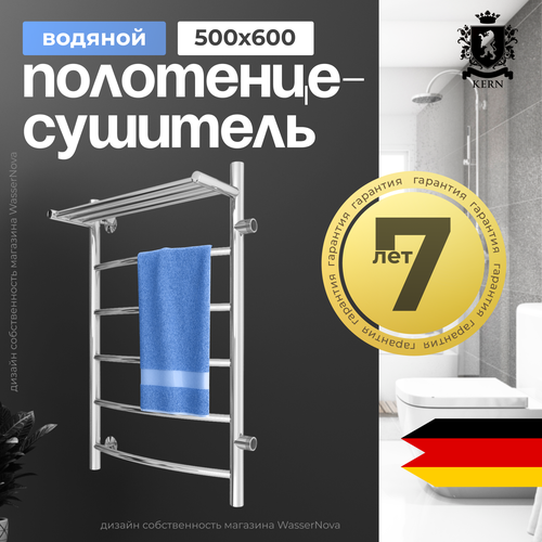Полотенцесушитель водяной с боковым левым подключением лесенка с полкой 500х600 мм
