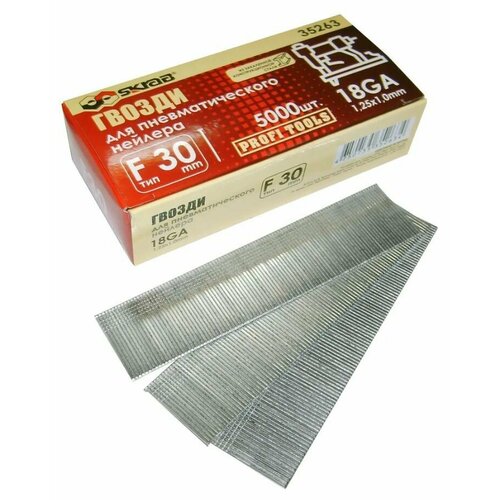 Гвозди для пневматического нейлера F30 мм 18GA 1.25 х 1.0 мм 5000 шт 35263