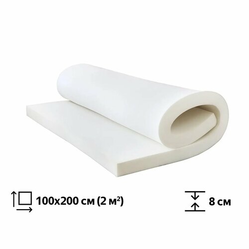 Поролон мебельный марки ST1828 80x800x2000мм, плотность 18 кг/м3, жесткость 28 кПа, цвет белый, гипоаллергенный мебельный пенополиуретан