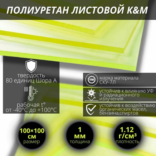 Полиуретан листовой, жёлтый K&M 1000х1000х1 мм