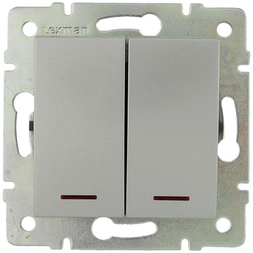 Выключатель встраиваемый Lexman Виктория 2 клавиши с подсветкой, цвет серебро матовый. Набор из 2 шт.