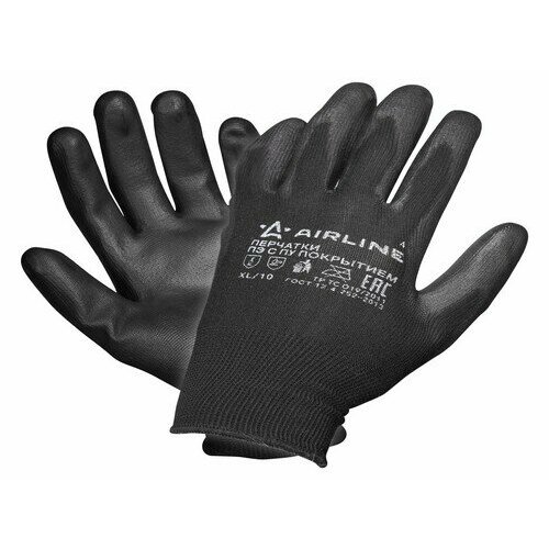 Перчатки Полиэфирные С Цельным Пу Покрытием Ладони (Xl) Черн./Сер. Airline Adwg003 AIRLINE арт. ADWG003