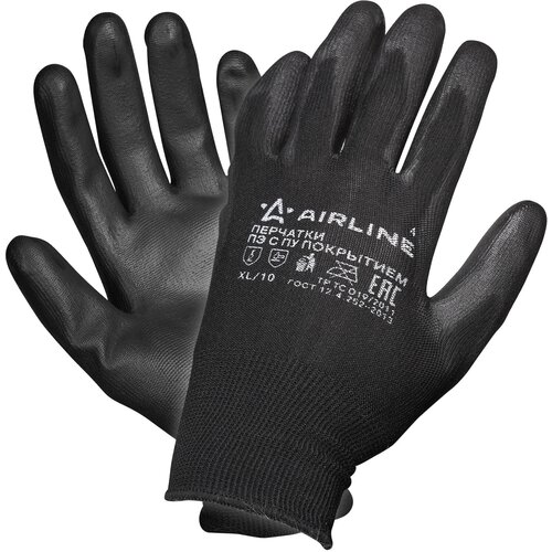AIRLINE Перчатки полиэфирные с цельным ПУ черн./сер. (XL) (AIRLINE)