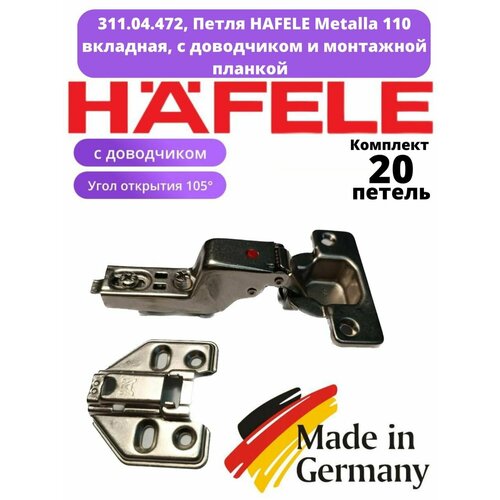 Вкладная петля HAFELE Metalla 110, с доводчиком, 20шт.