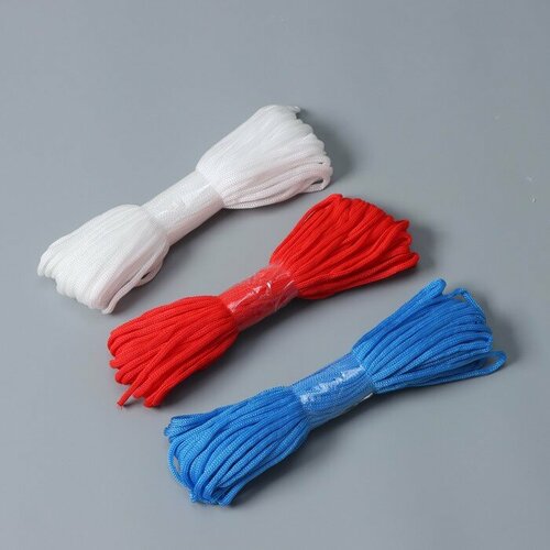 Набор бытовых шнуров «Триколор», d=4 мм, 20 м, цвет белый, синий, красный