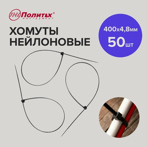Хомуты пластиковые стяжки нейлоновые черные 400 х 4,8 мм 50шт Политех Инструмент