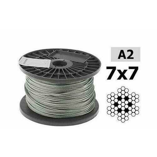 Трос нержавеющий 2 мм, 7х7, А2, 40 метров