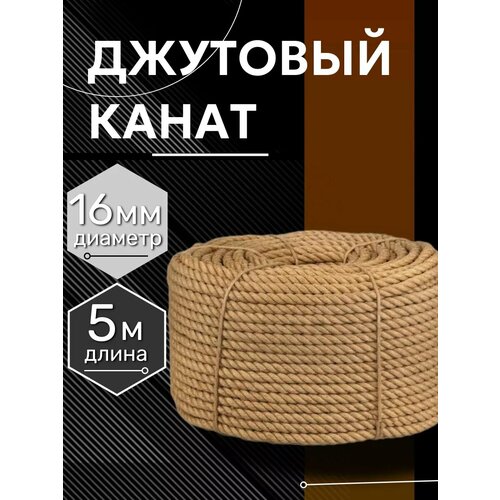 Канат джутовый 16 мм 5 метров шпагат веревка, 1020 кгс