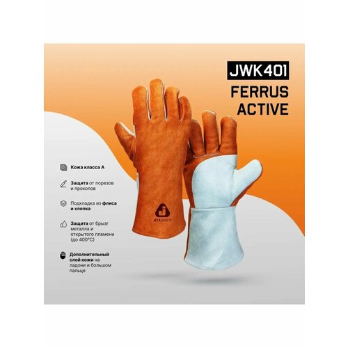 Перчатки рабочие JetaSafety JLE301 кожаные красные/белые (размер 10, XL)
