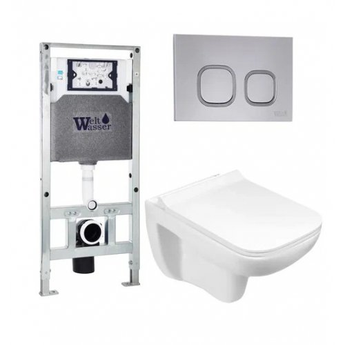 Комплект (инсталляция+унитаз+кнопка) WELTWASSER AMBERG 497 + TELBACH 004 GL-WT + AMBERG RD-MT CR